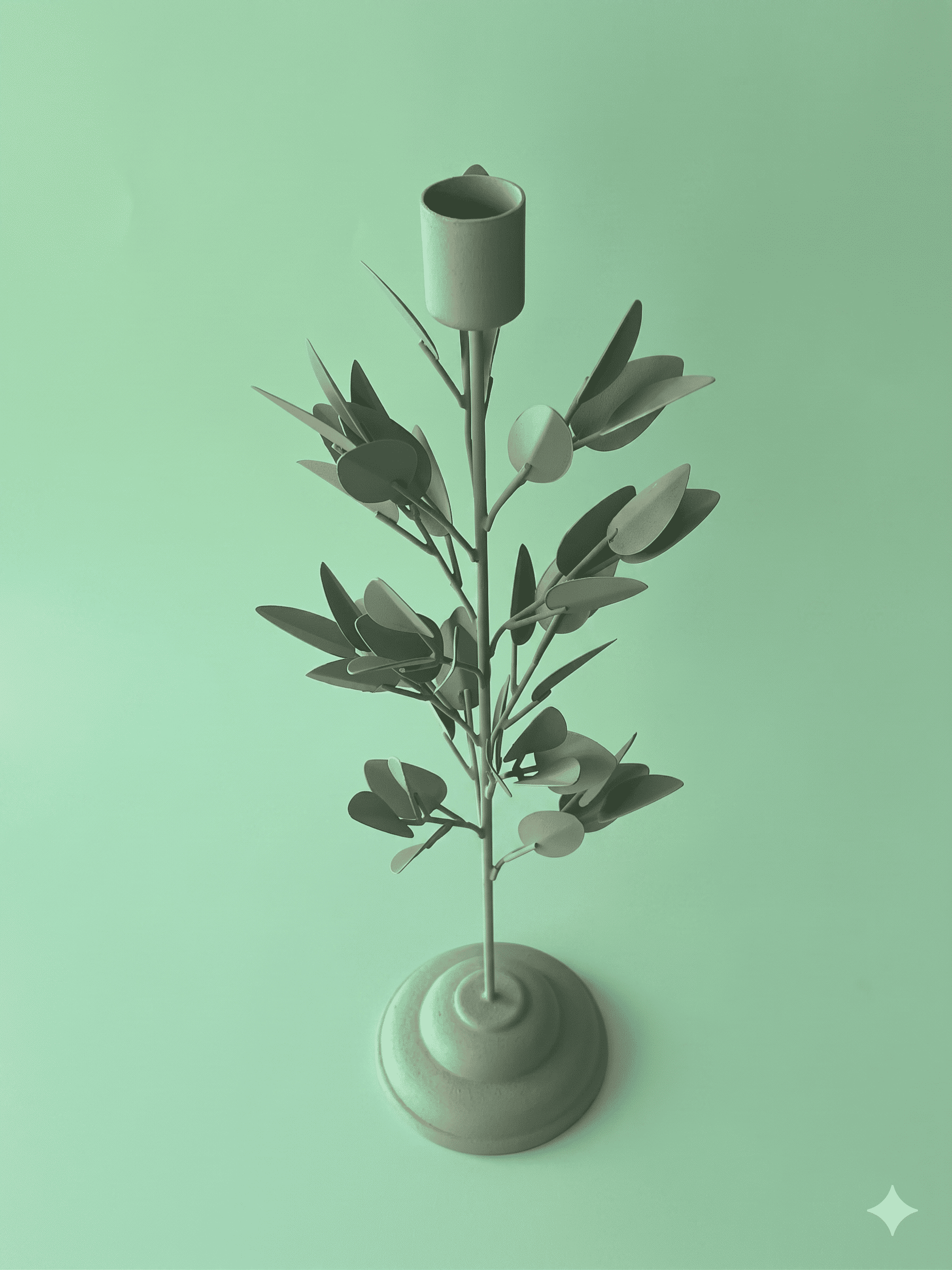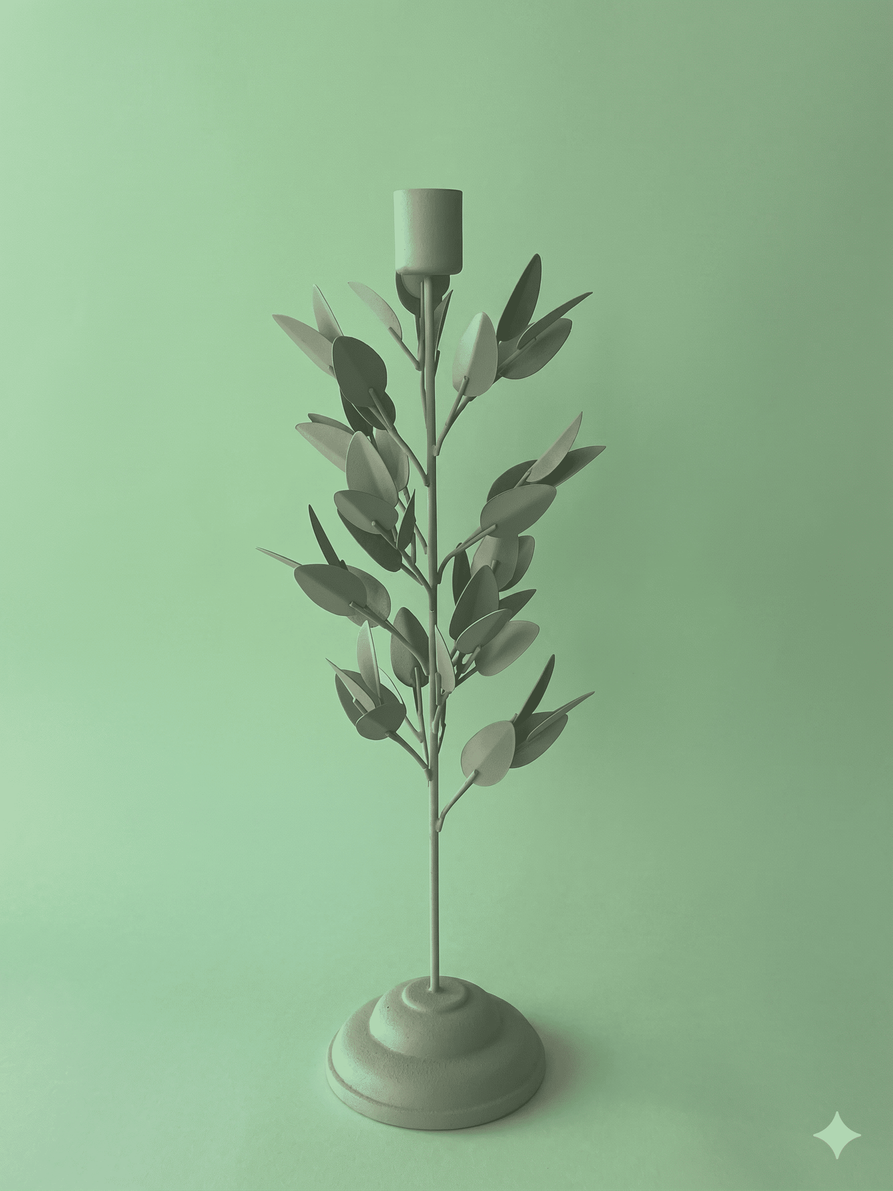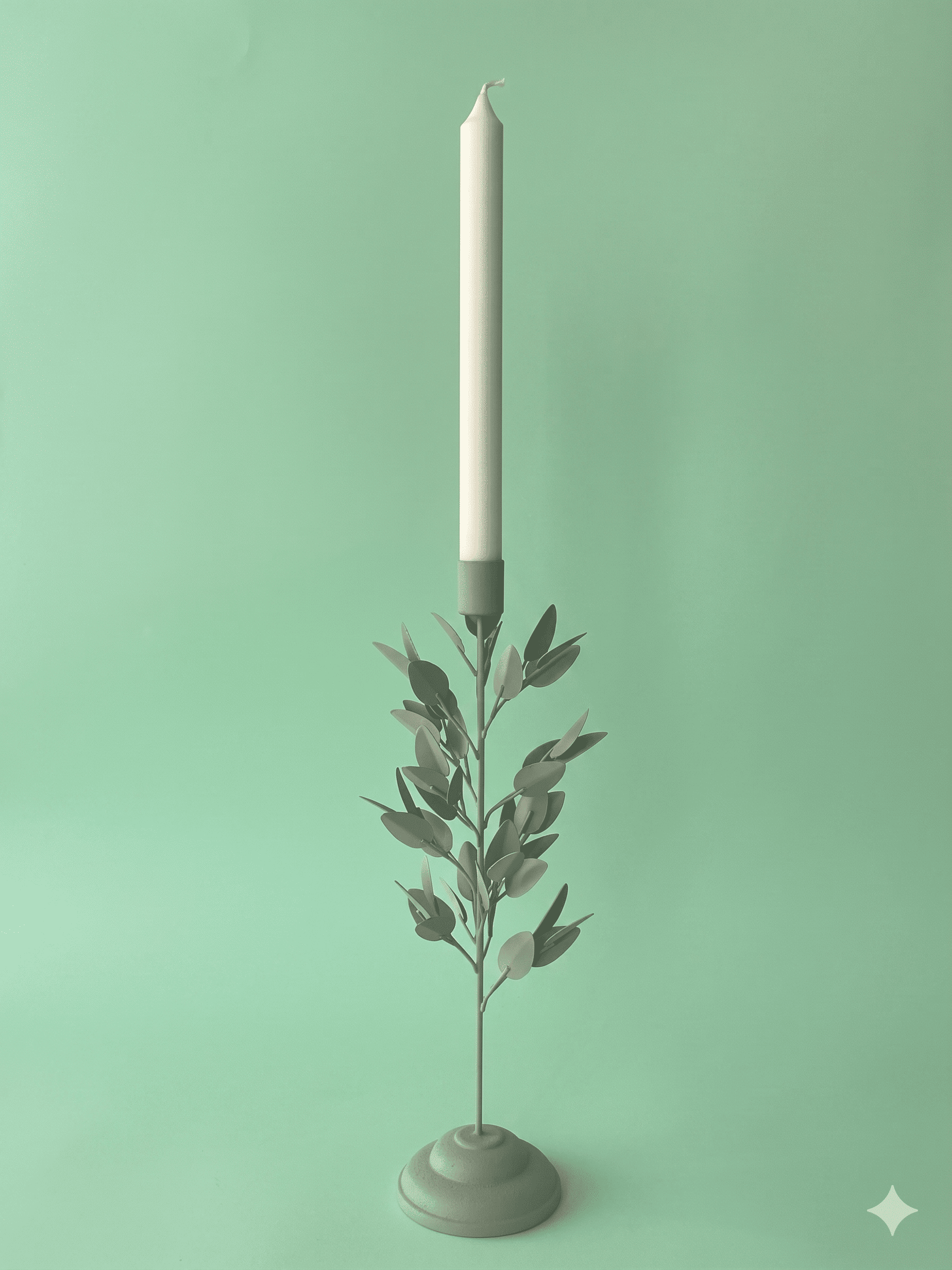 Candelabro rama verde menta de metal