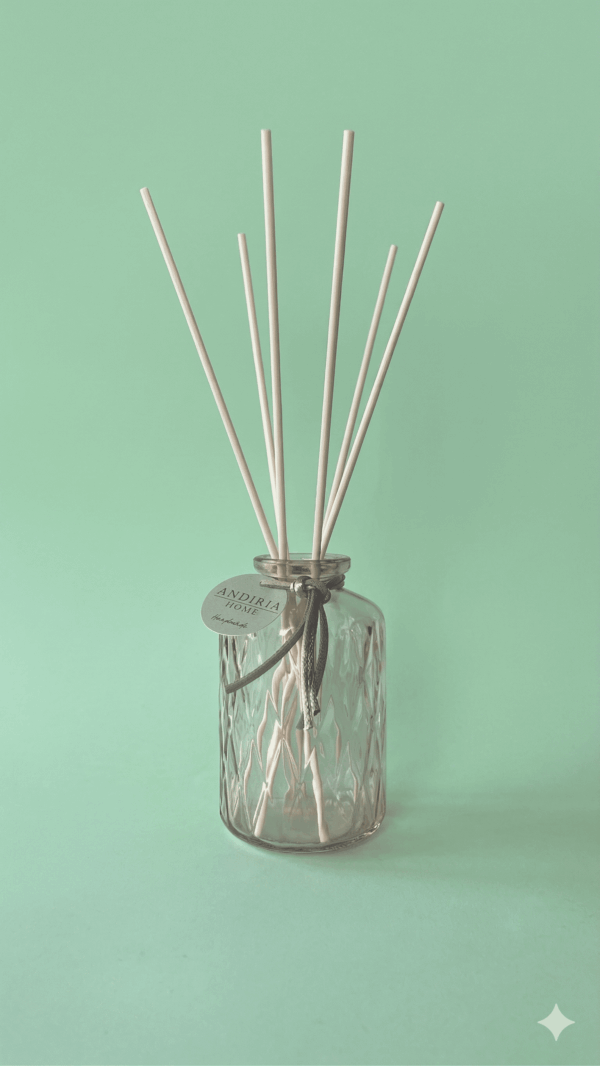 Este elegante difusor mikado, presentado en un recipiente de vidrio de diseño minimalista, está elaborado artesanalmente para ofrecer una experiencia aromática sofisticada y duradera.