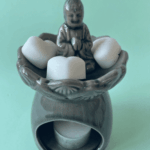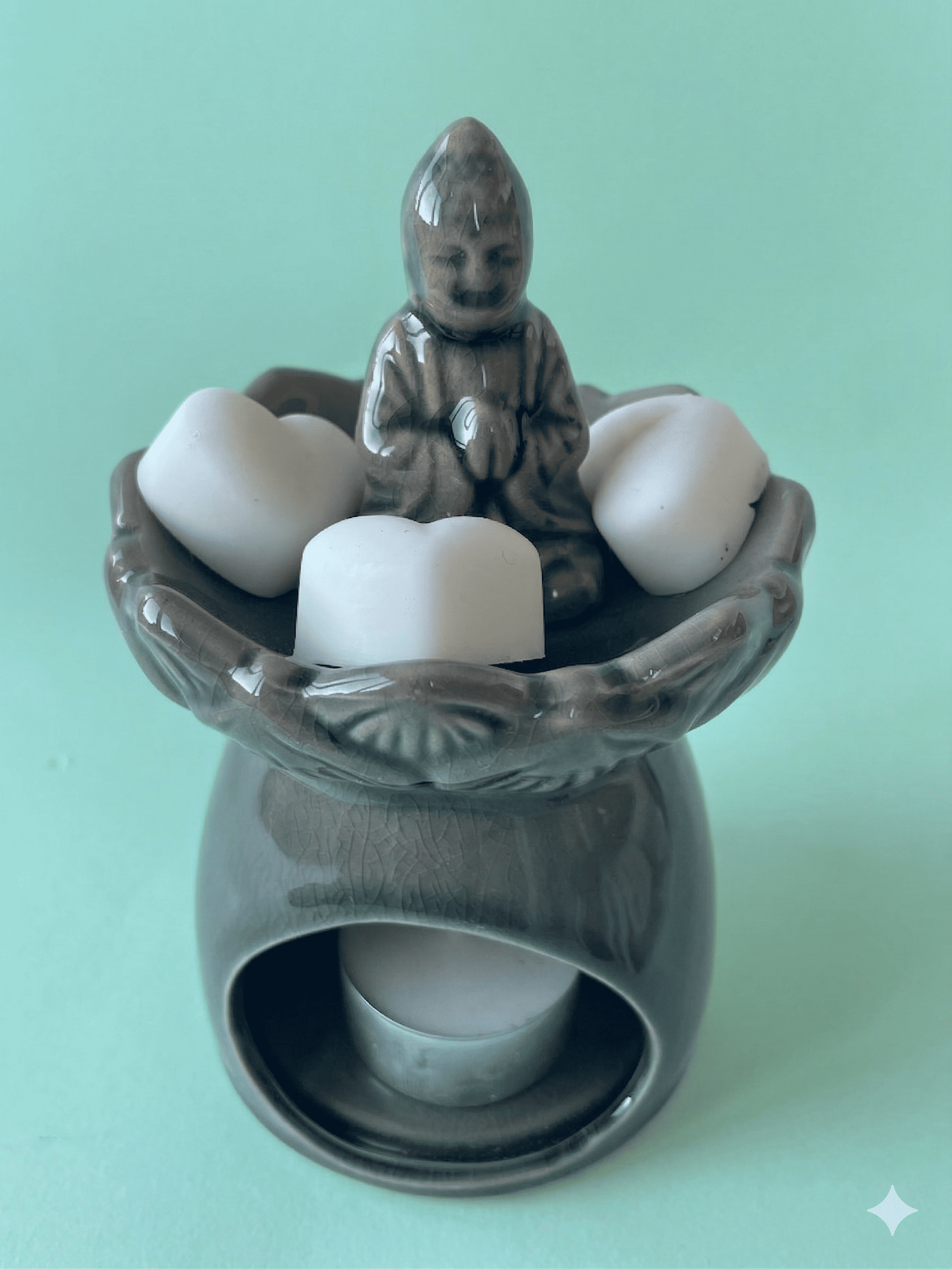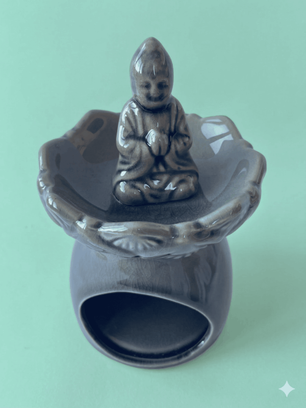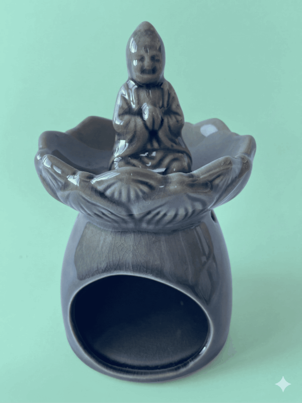 Añade serenidad y equilibrio a tu hogar con este quemador de diseño inspirado en la estética oriental. Su figura de Buda sobre una flor de loto crea una atmósfera de paz, ideal para tus momentos de meditación o descanso.