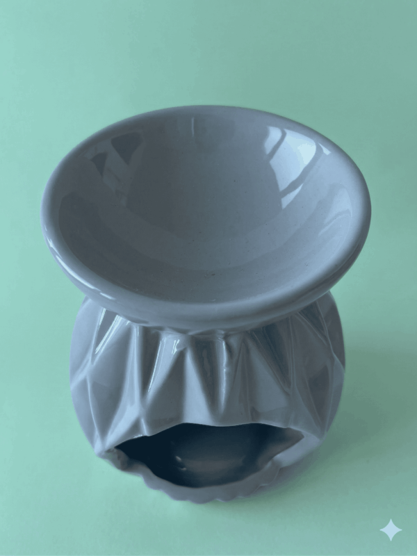 Transforma tu ambiente con este quemador de diseño minimalista y relieve en ondas. Una pieza decorativa y funcional, ideal para sesiones de aromaterapia en casa.