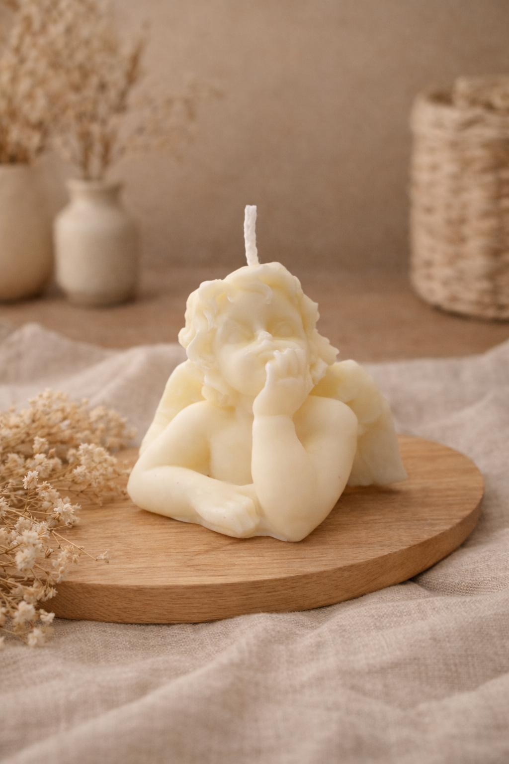 Delicada y llena de simbolismo, nuestra vela decorativa Ángel representa la protección, la paz y la esperanza. Su diseño transmite calma y armonía, convirtiéndose en una pieza especial que aporta belleza y energía positiva a cualquier espacio.